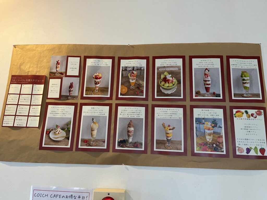 ⬆️小さくて見えにくいですが季節によってパフェの種類が変わるようなので、いろんな時期のパフェを食べてみたいですね。
