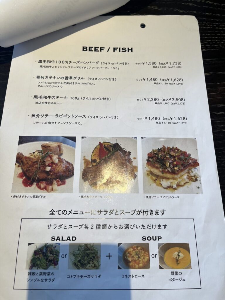 サラダは「雑穀と葉野菜のシンプルなサラダ」で、スープは「野菜のポタージュ」を選択しました。
