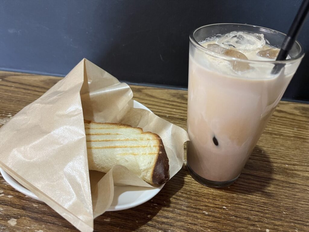ホットサンドウィッチはホカホカで、明太子とじゃがいもが合っていました✨カフェモカはほろ苦だけど甘さも感じることができ、美味しかったです🥤